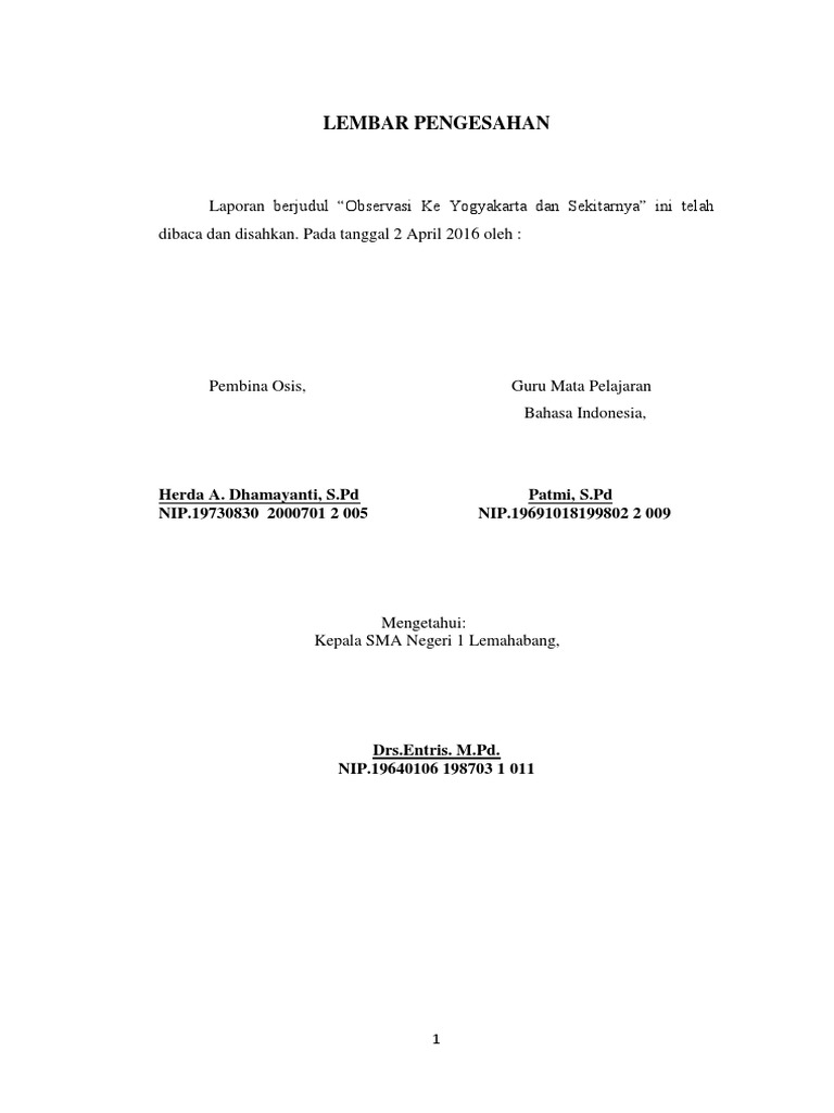 Contoh Halaman Pengesahan Laporan Study Tour Kumpulan Contoh Laporan
