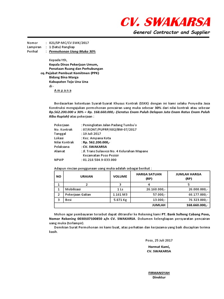 Bersama dengan datangnya surat ini dan merujuk surat perjanjian kerja Kontrak mengenai pelaksanaan pembanguna Nomor. Contoh Surat Permohonan Pembayaran. Surat pernyataan telah menerima uang muka jual beli barang surat pernyataan penunjukan penerima uang pembayaran jual beli tanah surat pernyataan perintah transfer uang pada.