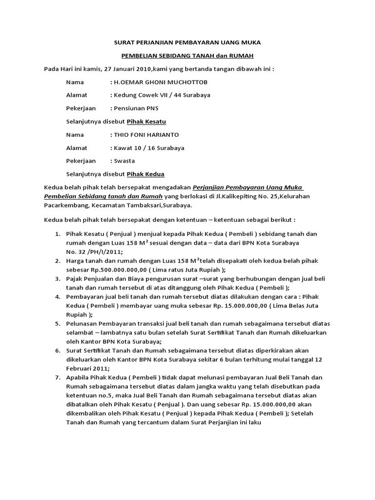 Contoh Surat Perjanjian Pembayaran Uang Muka Kumpulan Surat Penting