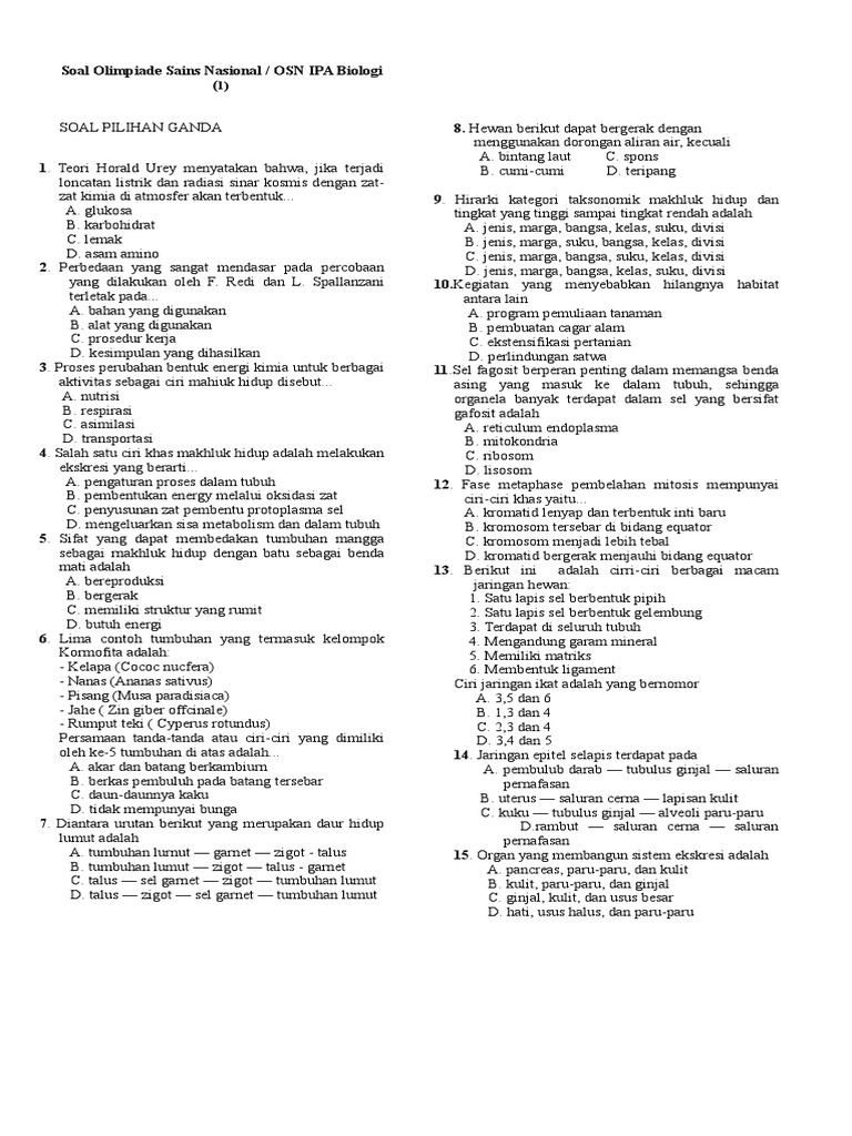 Download Contoh Soal Osn Ksn Ipa Smp Tingkat Kabupaten 2020